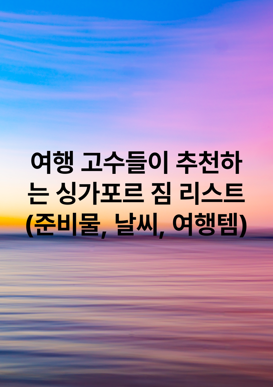 싱가포르는 깨끗하고 현대적인 도시국가로, 다양한 문화와 트렌디한 라이프스타일이 공존하는 여행지입니다. 하지만 특유의 날씨와 문화, 그리고 도시 환경을 고려할 때 챙겨야 할 준비물은 의외로 많습니다. 이 글에서는 여행 고수들이 실제 경험을 바탕으로 추천하는 싱가포르 여행 준비물 리스트를 항목별로 소개합니다.